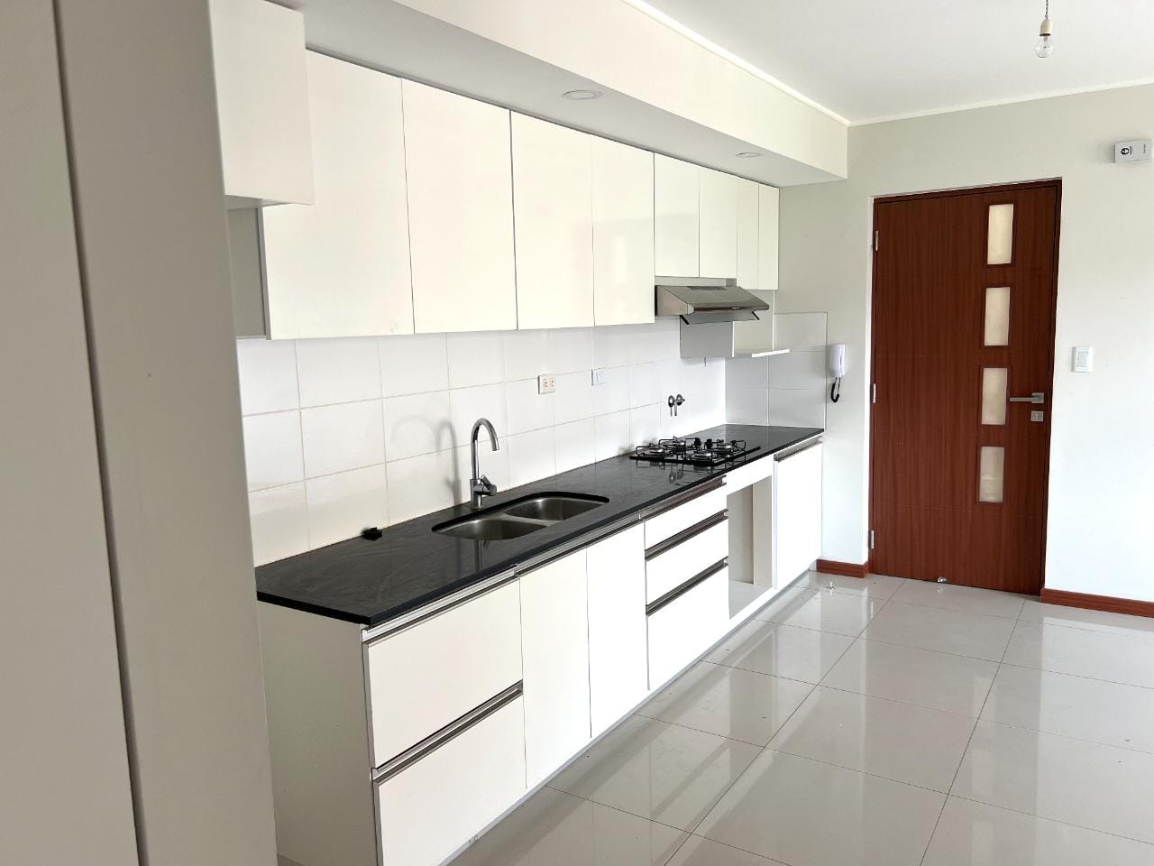 ▪️ Cocina tipo americana integrada al comedor, la cocina está totalmente equipada con muebles bajos y altos + cocina empotrada en el mesón.